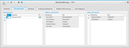 Skapa attestgrupper om det behövs. I en attestgrupp räcker det att någon av attestanterna gör attesten för att fakturan ska gå vidare i flödet, till skillnad från en attestlista där fakturan måste godkännas av alla attestanter i listan.