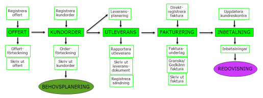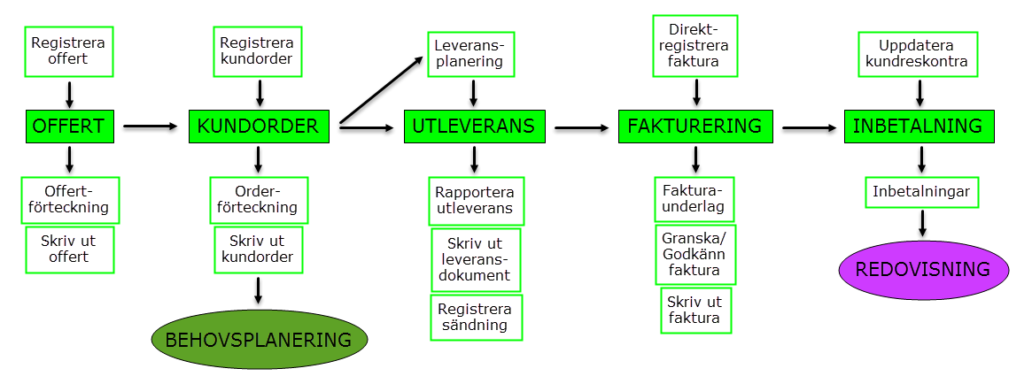 I MONITOR G5 finns olika flöden för kundorder, inköpsorder och tillverkningsorder. Här beskrivs dessa flöden översiktligt.