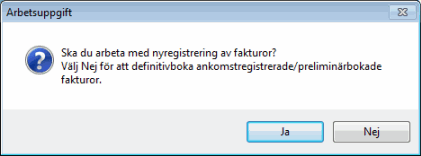 välja arbetsuppgift då denna rutin öppnas, om ankomst eller definitivbokning av fakturor ska göras. Om en person sitter och arbetar med ankomstregistrering kan då andra personer samtidigt gå in och definitivboka fakturor.