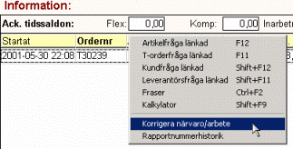 Med denna systemparameter aktiv går det i Stämplingsterminal, via Informationsmenyn i informationsdelen i läge: In/Arbete/Ut, öppna rutin Attestera / korrigera stämplingar och korrigera närvarostämplingarna för nuvarande dag. Det som går att korrigera är schemanummer, övertidskod och frånvarokod.