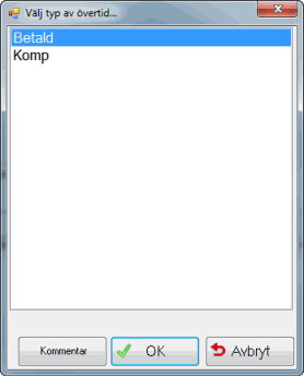 Den anställde kan även ange en Kommentar till övertidsstämplingen. Denna kommentar kan sedan ses i rutin Lista stämplingar.