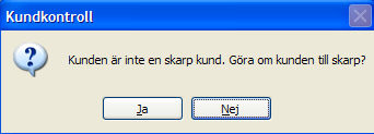Vid registrering av inköpsorder görs en kontroll av leverantörstatus och varnar om kontakten/leverantören har status > 1, dvs. inte är en skarp leverantör. Det går då välja att göra om leverantören till skarp leverantör för att därmed möjliggöra orderregistrering.