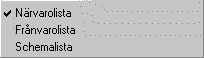 Efter valet Lista på bildskärm används Informationsmenyn under höger musknapp för att skifta visning av de valda listtyperna/filtyperna.