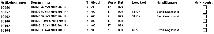 Här nedan visas utskriftsexempel på de listtyper som finns att välja på i beställningsbilden samt kommentarer till varje listtyp.