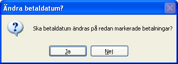 Om betalningsdatum ska justeras på de fakturor som markerats som återrapporterade går det att ange detta datum här. Detta är användbart t.ex. då bank/post dragit betalningarna på ett annat datum än det datum som visas i systemet. En