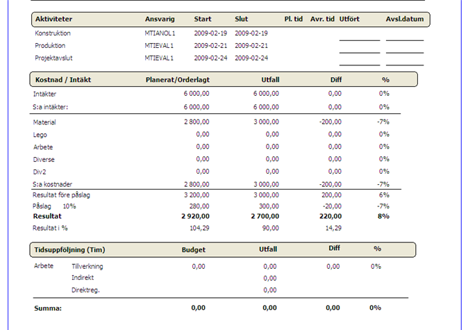 Du är här: Redovisning > Projekt > Registrera projekt > Utskriftsexempel