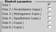 För blanketten CMR Fraktsedel finns det parametrar där det går att välja vilka kopior som ska skrivas ut av 6 sidor.