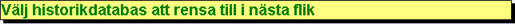 I den övre delen visas en förteckning med alla tabeller ur olika register som går att rensa. Här markeras den tabell där rensning ska utföras. Längre ned visas tydlig information om data i markerad tabell kan rensas och flyttas till en historikdatabas eller om det enbart går att göra en rensning.