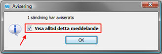 Val att alltid visa detta meddelande, exempelvis efter avisering.