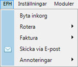 När fakturabilden är aktiv visas även en egen separat meny i fönstermenyn kallad EFH. Här går det att komma åt ytterligare funktioner, förutom de funktioner som finns åtkomliga via verktygsfältet Fönsterfunktioner och funktionsknapparna i fakturafönstret.