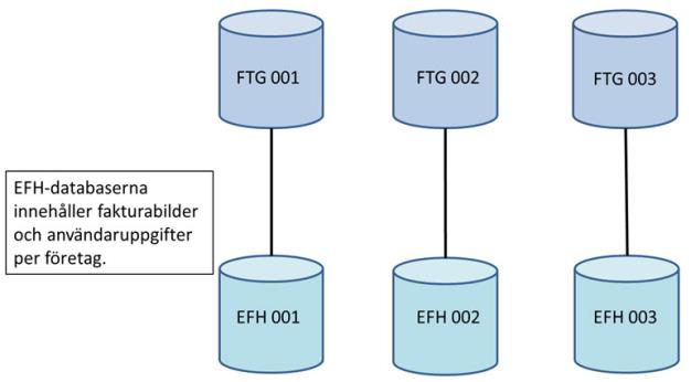 Finns det flera MONITOR-bolag på servern så är ordinarie data för respektive bolag lagrat i en separat databas. I de sidoordnade EFH-databaserna är datat med bilderna på leverantörsfakturorna uppdelat per bolag.